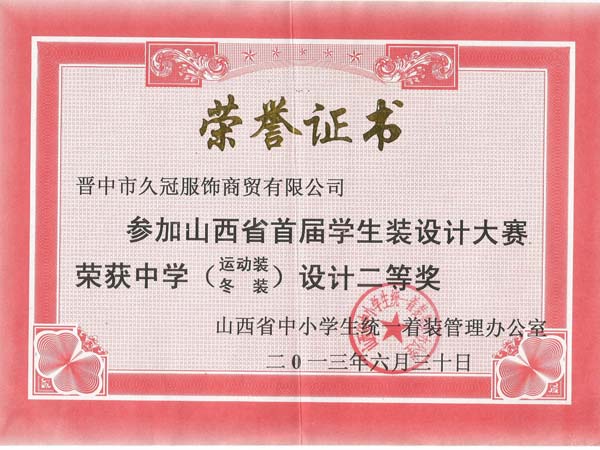 山西久冠服飾有限公司位于晉商故里山西省晉中市。公司注冊商標(biāo)“久冠”,是山西省教育學(xué)會學(xué)生服被裝專業(yè)委員會會長單位,中國質(zhì)量萬里行促進(jìn)會理事單位,中國教育裝備行業(yè)協(xié)會學(xué)校后勤裝備管理分會常務(wù)理事單位。